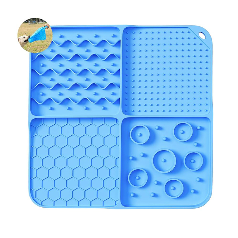"Il blu, personalizzatotappetini per leccati in silicone per caniè stato un venditore costante nella categoria per animali domestici di Amazon. Il design della ventosa elimina il problema degli animali domestici che versano cibo e il tasso di revisione positivo è di oltre il 95%! "